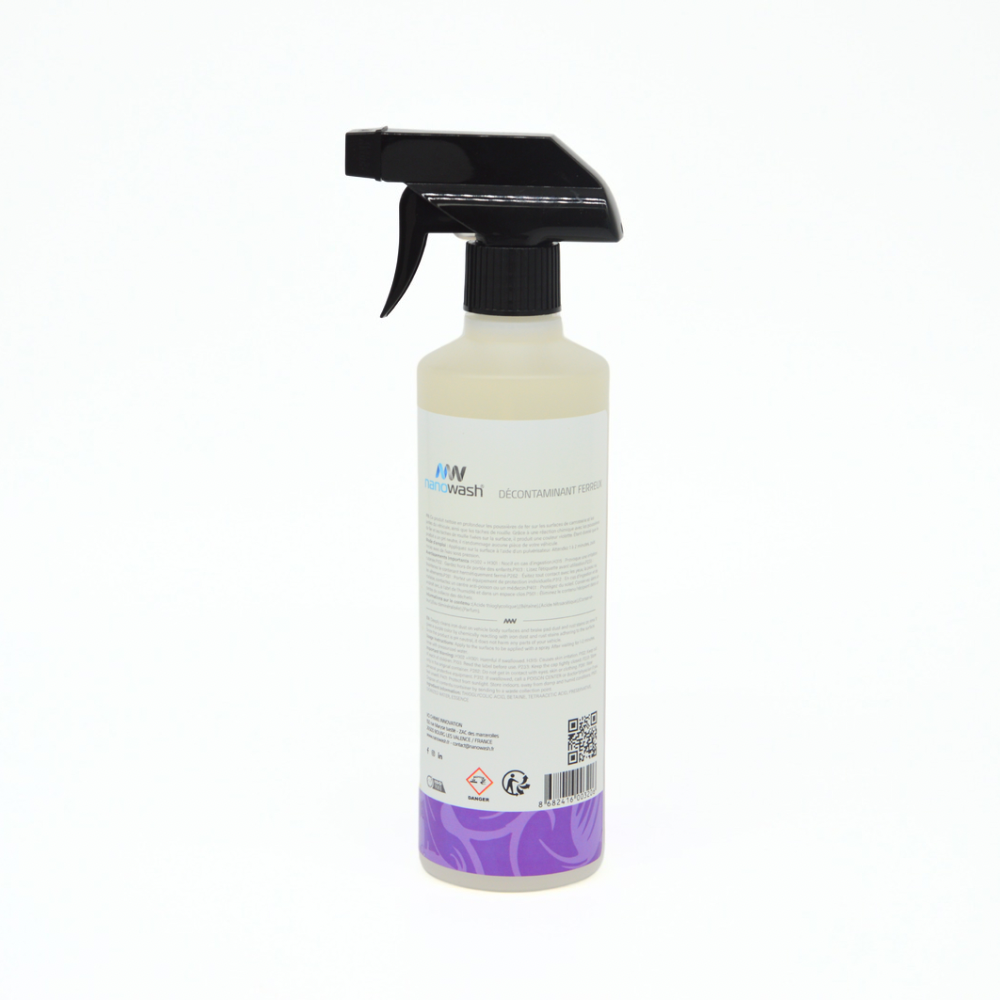 Le Décontaminant Ferreux (500ml) est spécialement formulé pour dissoudre et éliminer efficacement la poussière des plaquettes de frein, les particules de fer et les traces de rouille sur la carrosserie et les jantes. Grâce à son pH neutre, il agit sans risque d’endommager les surfaces, tout en redonnant à votre véhicule un éclat impeccable.